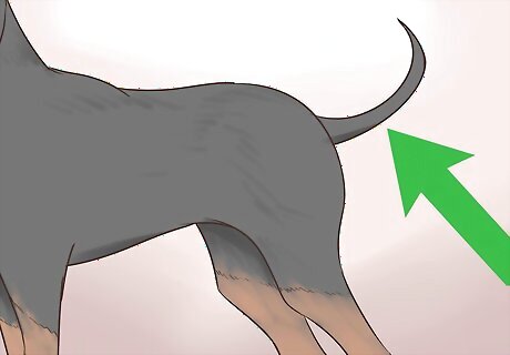 Watch the dog’s tail. A black and tan coonhound will have a fairly long, thin tail that tapers at the end. When the dog is in action (such as following a scent), it’s tail will perk up and bend at a slight right angle.