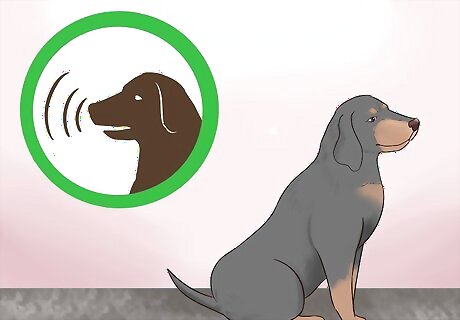 Listen for a loud bark. Black and tan coonhounds have an extremely loud and distinctive bark that can be heard for miles. The notable “arf arf” of the black and tan coonhound resembles the sound that a seal makes but in a much deeper tone. The dog often lets out this noisy bark when they are excited by a new scent or are playing.