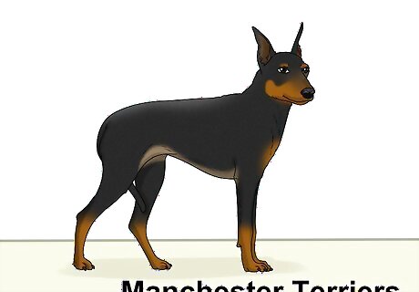 Know how Boston Terriers and Manchester Terriers differ. Manchester Terriers come in two varieties: standard and toy. Standards are roughly the same size as Bostons, though the toy variety is smaller. Manchesters have fine black and tan coats instead of the white and black, sable, or brindle coat seen on Bostons. Manchester Terriers are spirited and observant.