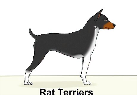 Notice how Boston Terriers and Rat Terriers differ. Rat Terriers are a member of the terrier group and about the same size as Boston Terriers. They are similar in appearance to Bostons but have dense, shiny coats. Their coats come in pied patterns - one or more colors mixed with white, which includes tan, brown, blue, and black. Rat Terriers are extremely protective and are sometimes used for search and rescue.