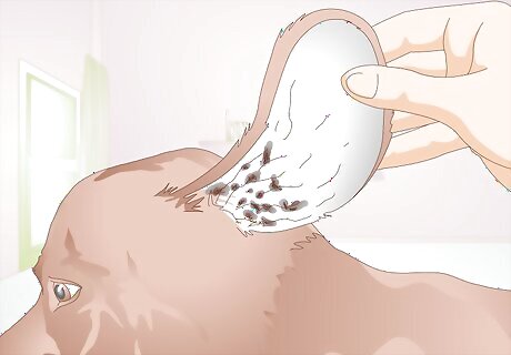 Observe head shaking. Ear mites can cause so much irritation that your dog will start shaking his head. This head shaking may be frequent, depending on the severity of the ear mite infestation. Frequent head shaking can damage the blood vessels in the ear, causing a pool of blood and formation of a hematoma (large blood clot). Head shaking is meant to relieve the itching, but may not be very effective at doing so.
