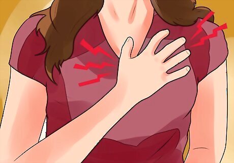Notice shortness of breath. If you feel winded all of a sudden, this could be a sign of a heart attack. Feeling winded means that you feel as if you cannot catch your breath. If you are feeling short of breath, try breathing through pursed lips (as if you are going to whistle). You use less energy when you breathe this way. This method of breathing may also help you feel more relaxed and lessen the "shortness of breath" feeling. When you have a heart attack, the blood pressure in your lungs and heart rise while the pumping function of the heart decreases.