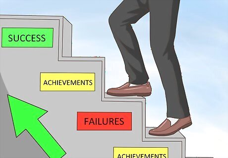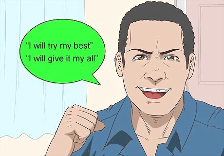 Monitor and expel negative self-talk. Your self-talk is all the unspoken words that run through your mind. Sometimes the ways in which you talk to yourself may be irrational or based on a lack of accurate information. Try to watch out for this kind of negative and inaccurate self-talk so that you can expel it from your mind. For example, if you're telling yourself that you're worthless because you should have finished your college degree by now, ask yourself some questions about this, such as: Why does the fact that you didn't finish college exactly when most of your peers did make you worthless? Why should college define your self-worth? Was what you went through while not in college a learning experience? Did it help to shape who you are today? Instead, use positive language to re-frame things. Try this even if you don't feel like being positive. Rather than saying things like "I'm never going to succeed" re-frame your thoughts to be more positive by saying things such as "I will try my best" or "I will give it my all."