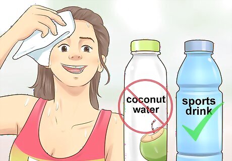 Do not use coconut water to refresh your sodium levels. When you sweat, you will lose sodium. Some people think they can use coconut water to restock their body’s sodium stores and thereby improve their health. However, the amount of sodium you gain from coconut water is negligible, and will not adequately restore your sodium levels – sports drinks are far better at doing that than coconut water.