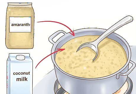 Try amaranth porridge. Amaranth is a small seed with high levels of calcium, iron, and protein. In a porridge, it is not unlike overnight coconut grits, but requires a bit more preparation. To get started, heat one pound of assorted, chopped berries, one tablespoon of vanilla, and ½ inch piece of peeled and minced ginger over medium-low heat. After about five minutes, turn off the heat. In a separate pan, heat two cups of amaranth (soaked overnight and then drained of water), three cups coconut milk, two cups coconut water, ¼ teaspoon salt, and ¼ cup coconut nectar. When the mixture is boiling, whisk in 2.5 teaspoons cinnamon. Reduce heat and simmer for 35 minutes. Spoon the porridge into a bowl. Top with nuts and more berries if you desire.