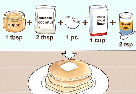 Try some coconut pancakes. Coconut pancakes are basically the same as regular pancakes, but instead of water, use coconut water. Just mix one tablespoon sugar, two tablespoons unsweetened shredded coconut, one cup whole wheat pastry flour, two teaspoons baking powder, and ¼ teaspoon salt in a large mixing bowl. Pour one cup coconut water, one egg, and 1.5 tablespoons butter into the dry ingredients. Mix the ingredients together to form a batter. Place a nonstick pan over medium heat and scoop the batter into the pan in quarter-cup spoonfuls. When you see bubbles forming in the surface of the pancake (usually after about three minutes), flip it over onto the other side. Cook the other side for about three minutes. You won’t be able to see bubbles on the cooked side. When the pancakes are done, put them on a plate and repeat with the rest of your batter. If you have leftovers, place them in the fridge in a resealable container and consume within 48 hours.