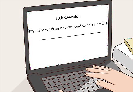 Use negatively-worded prompts so employees pay better attention. Employees get into a response pattern of 1–2 answers if the questions are on a rating scale. As you write your questions, include a few prompts that have the word “not”, such as “My manager does not respond to their emails.” That way, your employees will have to carefully read through the questions and will get more involved. Avoid more than 5 negatively-worded prompts since they may get confusing. It may help to underline or embolden the word “not” in these prompts to ensure employees don’t misread the survey.