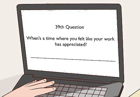Include 1–2 open-ended questions if you want employees to describe an issue. Open-ended questions allow you to get more detailed responses, but they can also put more pressure on your employees. Keep the open-ended questions toward the end of the survey and only use a few so they aren’t overwhelming. Leave enough space for everyone to write their response. For example, you can ask something like, “When’s a time where you felt like your work was appreciated?” or “Name 2 things you had trouble understanding from the training seminar.”
