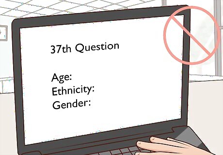 Limit demographics questions so the survey stays anonymous. Unless they’re absolutely important, try to avoid questions about age, race, or gender since the information can be used to identify who filled out the survey. If you do need to include demographic information, it may help to hire a consultant to review the survey information so you can’t determine who provided which answers.