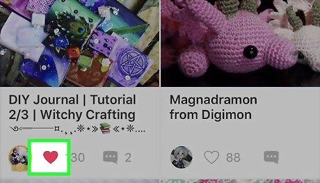 "Like" posts. Scroll through the latest or featured feeds and see what other users are posting. Tap the heart icon under the post to like it.