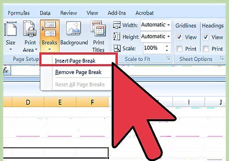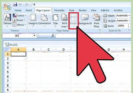 Enter Page Break view. This view allows you to see where automatic page breaks occur (indicated by blue dotted lines). Knowing where the automatic page breaks occur will help you place your new page breaks appropriately. Click the “View” tab and select “Page Break Preview” from the Workbook Views group to launch this view.