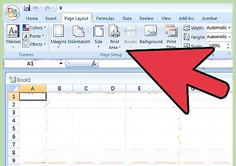 Open the Page Setup options. Click the “Page Layout” tab at the top of the screen and locate the group called “Page Setup.” To view the options, click the small arrow at the bottom right of the Page Setup group.