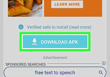 Tap Download APK. You'll have to scroll down the page to find this. It's under “Verified safe to install (read more).” A window will slide up from the bottom of your screen, tap “OK.”