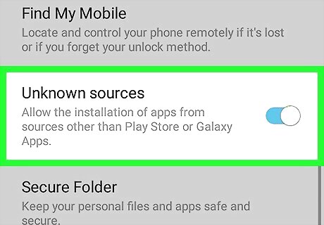 Tap to turn the switch on Android 7 Switch On next to “Unknown Sources.” You might have to confirm your action before continuing. This will allow the downloaded APK to run on your phone.