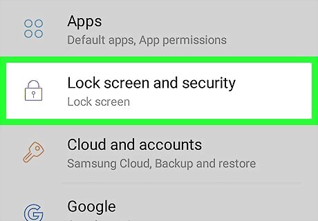 Tap Security or Lock screen and security. The wording for this menu will vary between phone models.