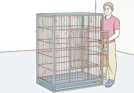 Place the cage in a central area. Your Macaw is part of your family and sees you and the other members of the house as their pack. It is important that you place the cage in an area of the house where you spend time. Never leave a Macaw in a cage in an empty room no one uses, especially if they are alone in the cage. Perfect areas for Macaw cages are high areas in dens and living rooms because they are safe areas that you and your family frequent. Macaw cages should not be in the kitchen because of all the fumes that come from this area. They should also not be in direct sunlight or near vents or other areas of airflow, such as doorways. The minimum cage size for a Macaw is 40 inches (100 cm) wide by 30 inches (76 cm) deep by 6 feet (1.8 m) tall.