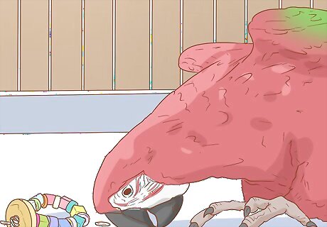 Rotate toys regularly. Macaws are intelligent birds that often get bored when given a limited number or the same things. Changing the toys in your parrot’s cage about once every seven to ten days can help keep them engaged. Doing so reduces the risk of your Macaw getting bored. Keep the toys you take out. Clean them and put them away until you are able to rotate them back into the cage after a few weeks. Wash the toys in a bird-safe cleaner like mild dishwashing detergent or vinegar and water. You could also steam the toys that have a lot of cracks and crevices followed by blotting them with a clean cloth, then air drying until completely dry.