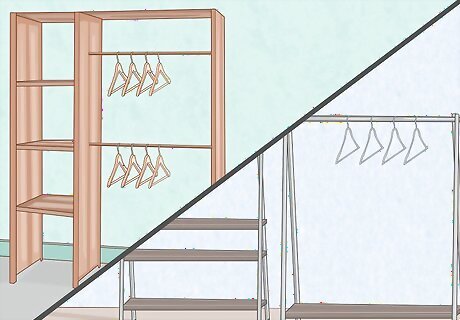 Set up clothing racks and other organizers. These organizational tools serve as convenient storage options in your room. Most clothing racks and organizers stand on the floor, but you can get hanging organizers that hook onto clothing rods and other surfaces. Use these options to hang or store clothing you wear frequently. You can find hanging organizers at some general stores. Clothing racks are available at some furniture outlets.
