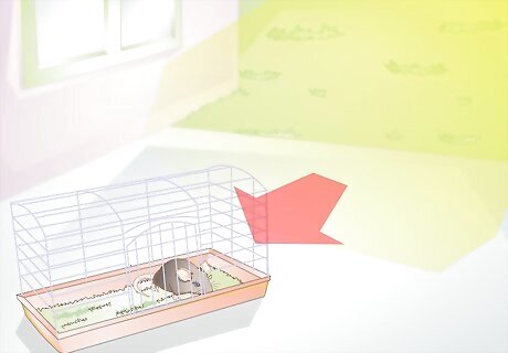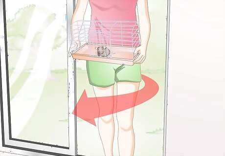 Keep the cage out of direct sunlight. You may not feel too hot sitting next to a window on a summer day, but your mouse might. Direct sunlight can be very dangerous for mice, even on mildly warm or cool days, and heat can build up very quickly inside your mouse's cage. Make sure the cage is kept indoors, and keep it away from any windows. If your mouse's cage must remain in a room with windows, make sure you close the curtains. Try to use thick curtains that block out heat and sunlight to help regulate the room's temperature.
