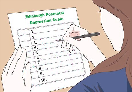 Take the Edinburgh Postnatal Depression Scale. This questionnaire can help identify how likely you are to have PPD. Answer the 10 questions honestly. Your doctor or therapist will help you score it. A score of 13 or above means that you are likely to have some form of depression. If you score lower than 13 but still feel depressed, anxious, withdrawn, or suicidal, you should still visit a mental health professional. Either your doctor or your therapist may give you this scale. Alternatively, you can fill it out yourself and bring it to an appointment.