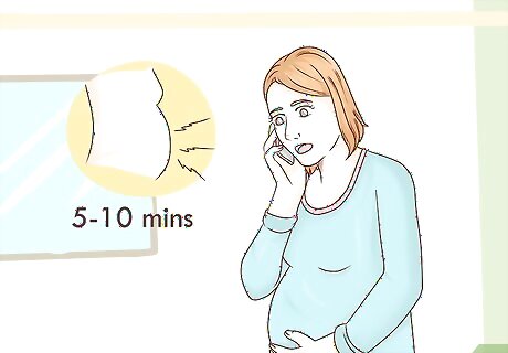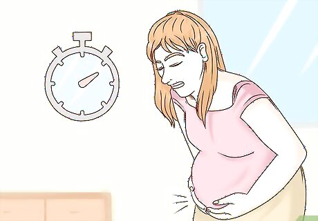 Time any contractions to determine if they’re Braxton-Hicks. Braxton-Hicks contractions are very common, and it’s easy to mistake them for the real thing. However, Braxton-Hicks contractions will be spaced irregularly, and they will not get closer together over time, while real contractions increase in frequency. Also, Braxton-Hicks contractions may vary in intensity, but they will not get consistently stronger the way real contractions will. They also tend to be concentrated in the lower abdomen, while real contractions are often felt in the lower back as well. Braxton-Hicks contractions often happen at the end of the day or when you’re physically active.