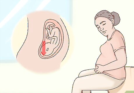 Look for a spotting of blood that may be your mucus plug. The mucus plug keeps bacteria out of your uterus while your baby grows. As your cervix thins prior to you giving birth, the mucus plug naturally dislodges. If this happens, you'll notice clear, pink, or reddish discharge that may look stringy. Watch for this discharge to appear shortly before you go into labor. If you notice unexplained spotting, always go to your doctor to get checked out.