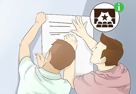 Get the word out. In order to book gigs for your group, you need to get some momentum going. Hang some flyers on bulletin boards at local coffee shops, post information about upcoming appearances on the personal social media accounts of your members, and upload videos of your performances to personal YouTube accounts. You should also take advantage of any local talent shows, competitions, or events sponsored by organizations to which one or more of your members belong. For example, if you all go to the same college, sign up for the school's yearly Battle of the Bands, or see if you can take part in the annual holiday caroling event or final exam study break.