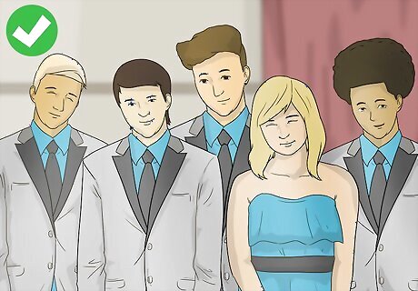 Create a cohesive style. Before your group's first performance, you should gather all your members to figure out what kind of look your group will have. Ask if everyone wants to dress in matching outfits for a coordinated effect, or if they'd prefer to wear different outfits for a more casual style. You want everyone to be on the same page, otherwise your group will look unorganized and unprofessional. Even if your group decides to go with casual, uncoordinated outfits, make sure that you enforce some basic guidelines. For example, ban ripped or frayed items, graphic tees, or other outfit elements which can distract from your group's singing.