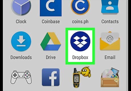 Open Dropbox on the Android. It's the blue icon with a white open box inside. You'll usually find it in the app drawer. You must be able to access the computer to use this method.
