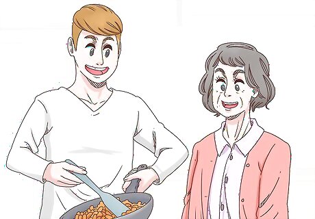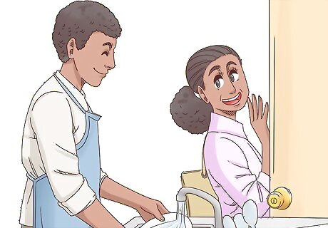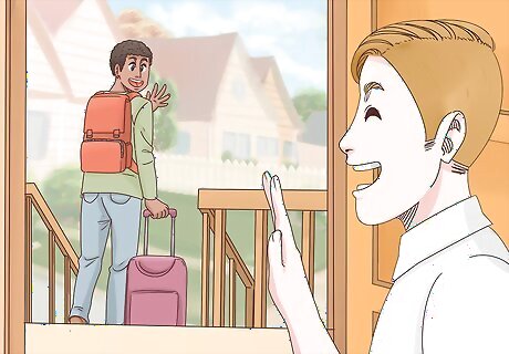Stay with a relative and do chores in exchange for rent. If you have a relative with a spare room or floor of a house, ask them if you can stay there for a bit. To sweeten the deal, offer to maintain chores around the house instead of paying for rent each month. You can ask your grandparents, aunt, or uncle, for instance. Help around the house with things like snow removal, weeding, and taking out the trash.