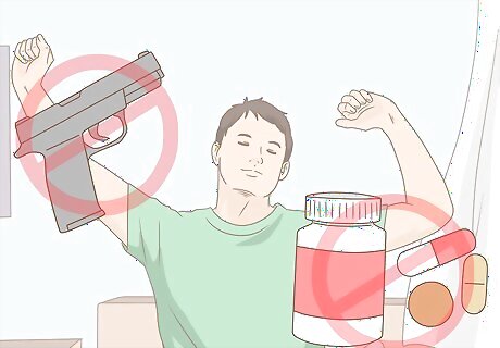 Tackle what you can in your home. You may be living unhappily because you don't like your home, or don't like where your home is. You may not like who you live with, or how far away you live from loved ones. These issues are hard to tackle, if you're not in a position to move house. Try to only worry about what you can change. Clean up or tidy up if the state of your room or home is getting you down. Redecorating may give you a boost if it's possible. Just displaying some photos or artwork that have positive associations for you might help. If you want to continue living unhappily, quit cleaning up and redecorate in black or grey.