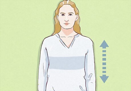 Stand tall. Be sure that your posture looks nice and confident. Keep your shoulders down and back. Don’t hold your head up high to avoid a double chin, because it will make your neck look large. Instead, thrust your chin forward very slightly (a little farther out than you would normally hold it, but not much).