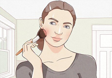 Put on approximately the same amount of makeup as usual. If you usually wear makeup, go ahead and put it on as usual. If you never wear makeup, you probably don’t want to put on a ton of it for the photo. You won’t look like yourself, and you could get detained. Wear a little oil-absorbing powder to prevent shine if you want to. This will be most useful on your forehead or nose. Even if you don’t usually wear makeup, you may want to put a bit of concealer or powder over any dark circles under your eyes. These dark places can cause a glare (and make you look sick or tired). Cover up any blemishes you have with a little concealer so they don't show up in the photo.