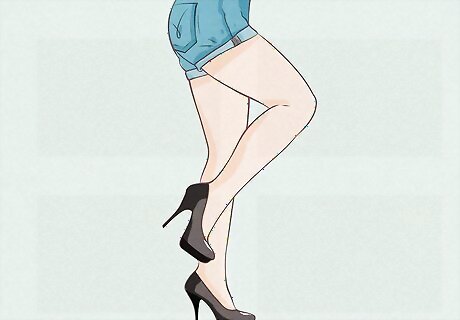 Pair your shorts with appropriate footwear. In addition to matching the color of your shoes to your entire outfit, you'll also need to take the style of your shorts into account. Sneakers or a flat pair of tennis shoes will work with casual and athletic shorts. Don't wear dress shoes with athletic shorts. If you choose to pair sneakers or tennis shoes with a nicer pair of shorts, make sure those shoes are clean and in perfect condition. For more feminine styles, high heels and/or thigh-high boots will make nicer shorts even sexier.