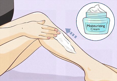 Keep your legs moisturized. Visibly dry skin can detract from your legs' looks. Keep them shiny and toned with some moisturizing body lotion of your choice. Avoid causes of dry skin like harsh soaps, heat, and low humidity. Always wear sunscreen on your legs when wearing shorts during the day. Staying well-moisturized can actually make your legs look longer.