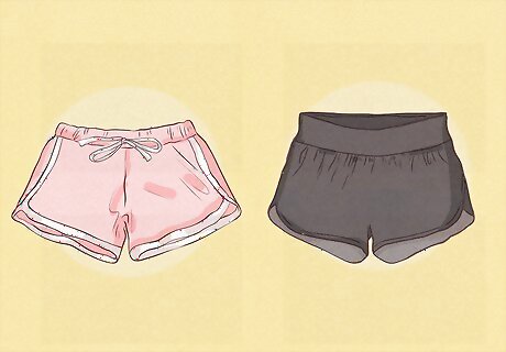 Wear the right underwear. The first garment you'll need to pick out is the most appropriate underwear. In general, you probably want to keep your underwear from showing. Check to see that it's not peeking through by trying on both the underwear and the shorts in front of a mirror. Which styles and cuts work well will depend on the type of shorts you're wearing. Of course, if you want to show off your underwear, then go ahead. In that case, make sure your underwear looks just as nice as the rest of your outfit. Most people aren't into tighty whities that are stained and full of holes.