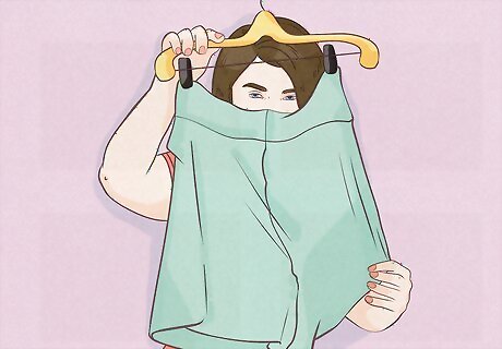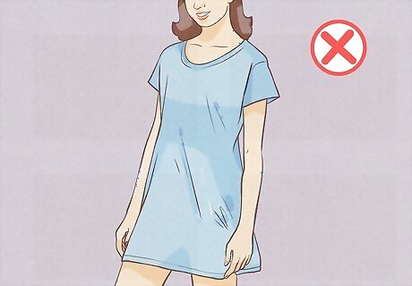 Don't wear too-long t-shirts. Avoid t-shirts that are longer than your shorts. If your shorts aren't visible under your shirt, you're likely to look like you're not wearing bottoms at all. Even if both go down to your knees, you may get some stares if you go out in public.
