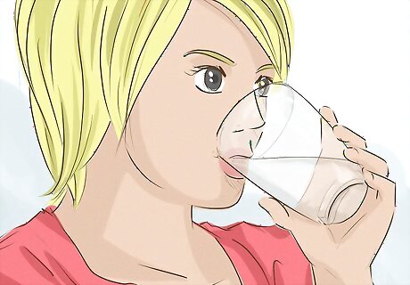 Monitor your water and fluid intake. Boosting your water weight can actually lead to true weight loss. Aim to drink at least 8 full cups of water or calorie-free drinks each day. Take small sips when drinking and use a straw to minimize any discomfort from stomach air. It’s also a good idea to avoid drinking during meals or 30 minutes beforehand. This leaves room in your stomach for actual food.