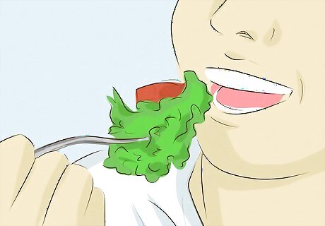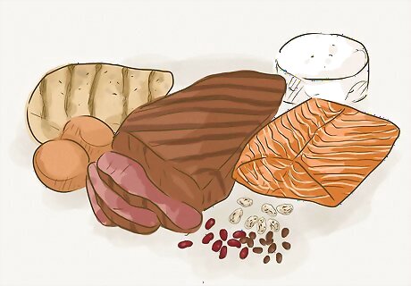 Increase your protein intake. Proteins are what your body uses to build muscle, which makes it possible to burn more calories and fat. Look for low-fat protein options, such as skinless chicken or fish. Experiment with different preparations, so that you’ll still get a flavorful meal. Talk with your dietitian about exactly how much protein you should be eating each day. Mixing high texture foods with proteins is another way for you to stay satisfied. For example, try pairing celery with peanut butter for one of your meals or snacks.