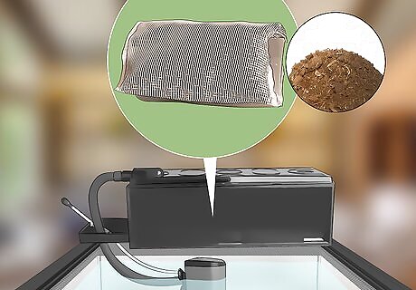 Add peat moss to your filter for another natural boost. Since peat moss can clump together and might get removed when you’re cleaning your tank, it’s best to put it inside of a mesh bag, then place the bag inside of your filter. The peat moss will naturally assist your filter, helping lower the pH in the tank. Use the size of your filter to help you determine how much of the moss you need to use. Peat moss is also prone to discoloring the water in your tank. To avoid this, soak it for a few days in a bucket of water before placing it in your tank. The amount of peat moss you should use will depend on the size of your tank and the pH level you’re trying to reach. Experiment with different amounts to find what works for your tank.