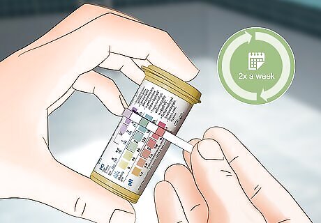 Test the pH at least twice a week with a test kit. The chemicals used in your pool will become unbalanced if they’re left unattended, so it’s important to test the pH in your pool about 2-3 times a week, even after you balance it. You can use litmus test strips if you like, but a DPD test kit will give you more accurate results. These kits measure the pH and total alkalinity (TA) of the water, along with the pool's chlorine levels, making it easier to balance your pool all at once. Oils from skin, sunscreen, lotion, and dirt can all change the pH balance in your pool. If your pool is being used every day, you probably need to check it daily.