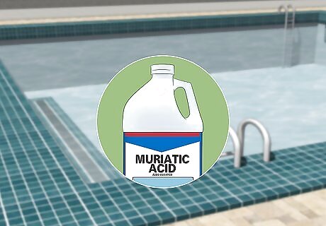 Add muriatic acid for a quick pH adjustment in your pool. Muriatic acid, or hydrochloric acid, is commonly used in pools to lower the pH. Depending on the preparation you choose, you’ll either add the acid directly to the pool or dilute it in a bucket of water, then pour into the pool. When you pour in the muriatic acid, hold the container close to the surface of the water so it doesn't splash back onto you. Also, pour the acid directly over a return jet so it will circulate through the water more quickly, and make sure the vent on the return jet is pointing down, if you have one. Read the label carefully to determine how much muriatic acid to add to your pool. Add a little less than you think you need, wait 4 hours, and test again. Add more if needed.Warning: Muriatic acid and sodium bisulfate are both corrosive chemicals. Read and follow the label instructions carefully. Work in a ventilated area, and wear eye protection and gloves. After you add the muriatic acid, wait at least 4 hours before you allow anyone into the pool.
