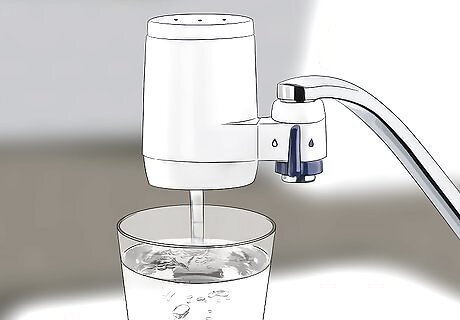 Install a water filter on your tap to lower pH at the source. A water filter works by removing minerals from your water that can raise the pH, including sodium, fluoride, and potassium. Depending on the model you choose, the filter can usually just be screwed onto your faucet. When you turn on the tap, the filter will lower the pH of the water. Most household water filters can purify about 10 US gal (38 L) of water every hour.