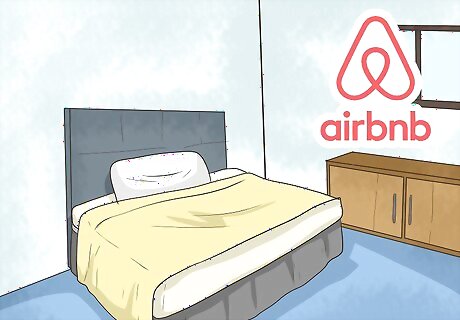 Rent out your spare room to strangers if you live in a popular tourist area. Many travellers like the more personal and affordable option of renting a room instead of a traditional hotel. Simply take great photos of the room and amenities, write a description of the house, and list the room on a vacation rental site. Airbnb is the most popular site for travellers looking to stay in houses. HomeAway is another good option. If you are renting your house, make sure you check with your landlord before subletting any rooms. Similarly, always ask your parents before attempting to rent out your room! If you are going away for the weekend, consider listing the entire house. The rate for renting a room varies dramatically depending on the area that you live and how nice your house is. Look online at room rentals in your area to get an idea of what to charge.