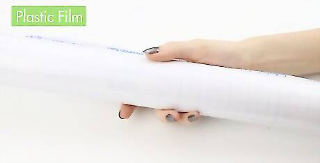 Grab your plastic covering. Plastic film is probably the most standard covering for a book. You can use clear or colored adhesive plastic contact paper. Or you can use various types of book covering plastic that isn’t adhesive but is made for book covering. Either type of plastic will protect your book. But, the non-adhesive method tends to be less damaging to the book in the long run. should you wish to ever remove the plastic covering, non-adhesive is easier to remove. You can also opt to make a plastic sheet protector book cover. The chemicals in the adhesive may eventually tarnish the book. Additionally, the adhesive method is not an environmentally friendly way to cover a book because recycled versions of it have not yet been created. Regular plastic coverings take a bit more work but can be easily removed. You can also try covering a book with plastic wrap. Contact paper book covering comes in a roll. It is usually available from anywhere that sells stationery or craft supplies. Most rolls will have measurements printed on the backing of the contact paper, which will help you to align the plastic.