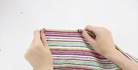 Stitch the fabric together. Using a topstitch, sew across the top and bottom of the cover. A topstitch is a method of stitching that has you bringing the thread over the edges of your fabric layers. The stitch will then bring the layers together.