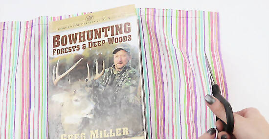 Place the book back onto the fabric. The interfaced side of the fabric should still be facing up. The interfacing isn’t meant to be shown. When you lay the book down, it will be against the interfaced side of fabric. This means that when you complete your cover, the interfacing will be inside and not exposed.