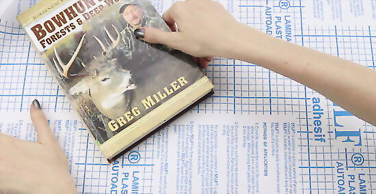 Remove the book from the contact paper. Peel the contact away from its backing if you need to. If you're using sticky contact paper that has a backing, you'll need to peel away the backing to reveal the adhesive side. When you lay the book back down, lay it on the adhesive side. The plastic will stick to the book.