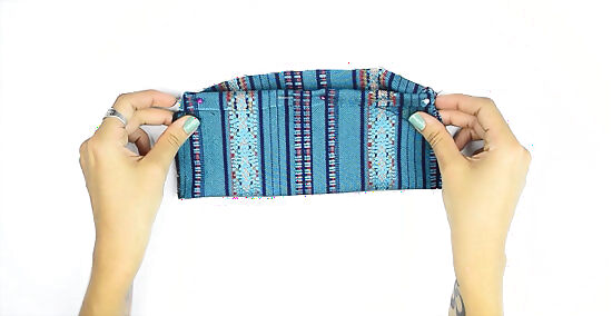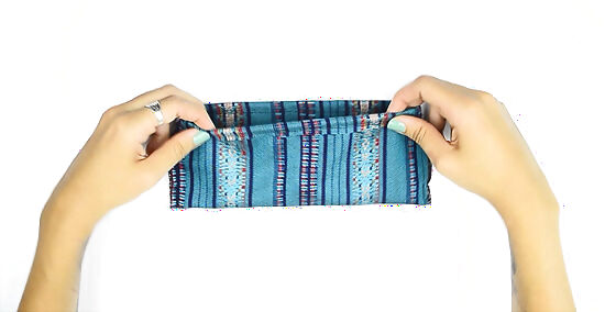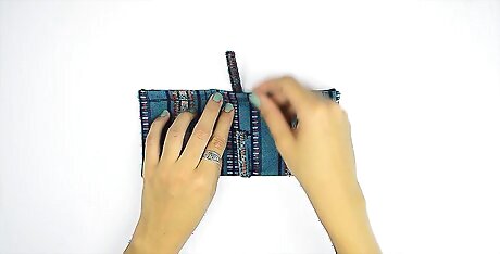 Turn the case inside out. After you have glued or sewn the top edge of the pouch, turn the pouch inside out. You should not have any visible fabric edges after you turn the pouch inside out. If you glued the edges, make sure that they are dry before you turn the fabric inside out.