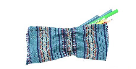 Use your pencil case. When you have finished attaching your Velcro, put your pencils into the pencil case and secure the band. Then, flip over the case and adjust the material on the other side to make it look more like a bow. Your bow pencil case is now complete!
